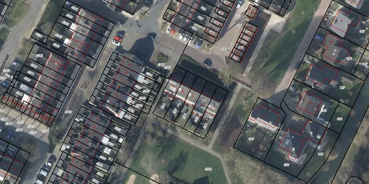 Looierstraat 45 is gelegen op kadastraal perceel DVN00C295. Deze kadastrale aanduiding is uniek en wordt gebruikt door het Kadaster om eigendomsrechten en andere zakelijke rechten vast te leggen. Het perceel maakt onderdeel uit van de kadastrale gemeente Duiven.