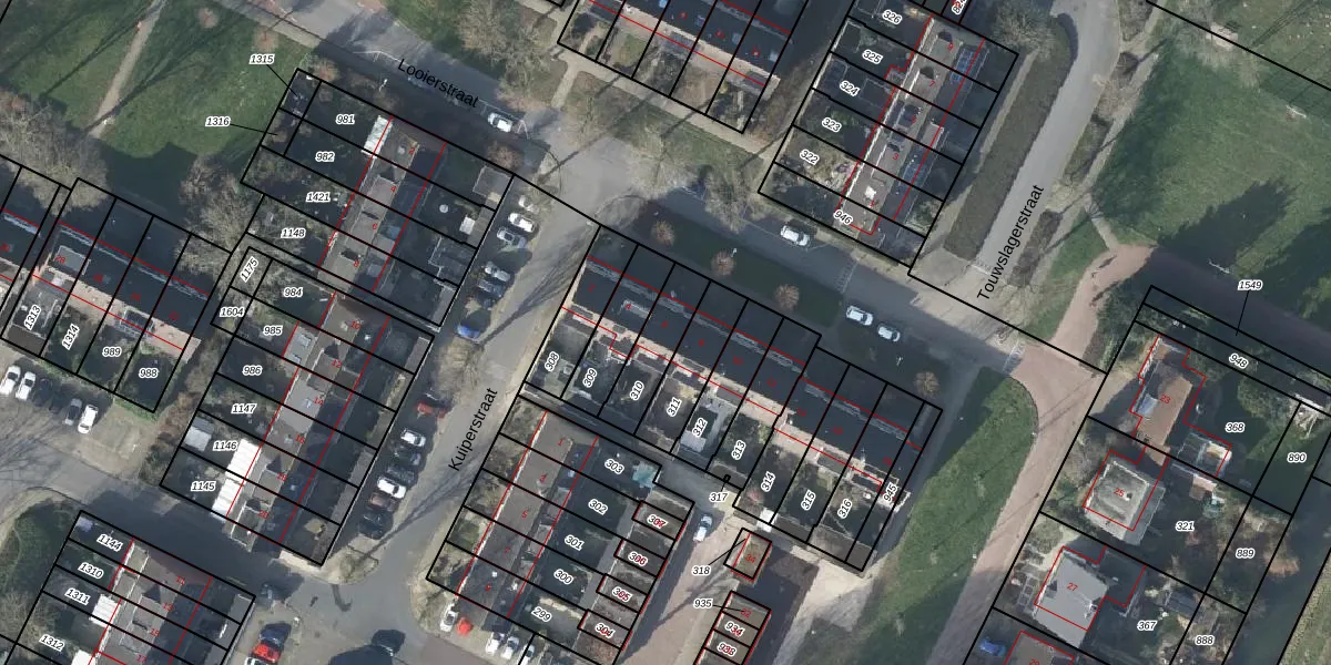 Het perceel waarop Looierstraat 6 staat heeft een oppervlakte van 159 m². Dit is een middelgroot perceel. De perceeloppervlakte wordt geregistreerd door het Kadaster. Gedetailleerde informatie over de maten van dit perceel kunt u vinden in het rapport Kadastrale kaart met maatvoering van Looierstraat 6.