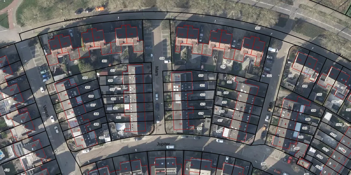 Gebruik de zoekbalk of klik op een perceel voor informatie over de adressen binnen dit perceel.