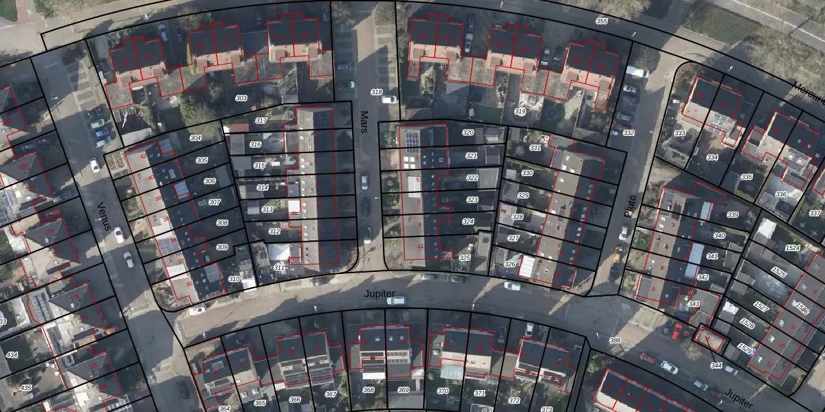 Gebruik de zoekbalk of klik op een perceel voor informatie over de adressen binnen dit perceel.