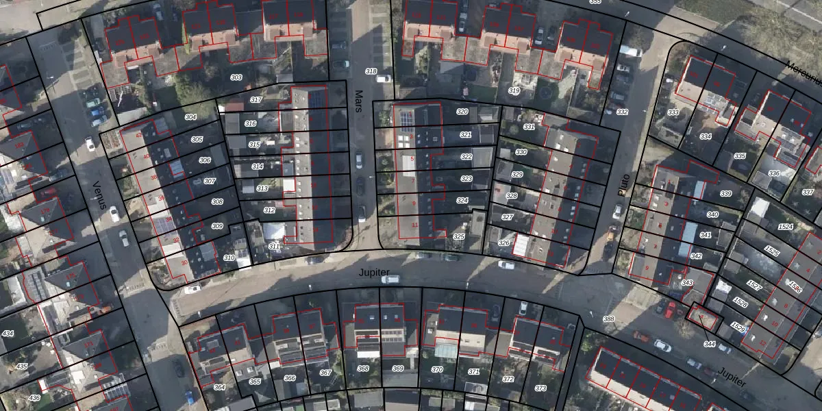 Het perceel waarop Mars 9 staat heeft een oppervlakte van 145 m². Dit is een middelgroot perceel. De perceeloppervlakte wordt geregistreerd door het Kadaster. Gedetailleerde informatie over de maten van dit perceel kunt u vinden in het rapport Kadastrale kaart met maatvoering van Mars 9.