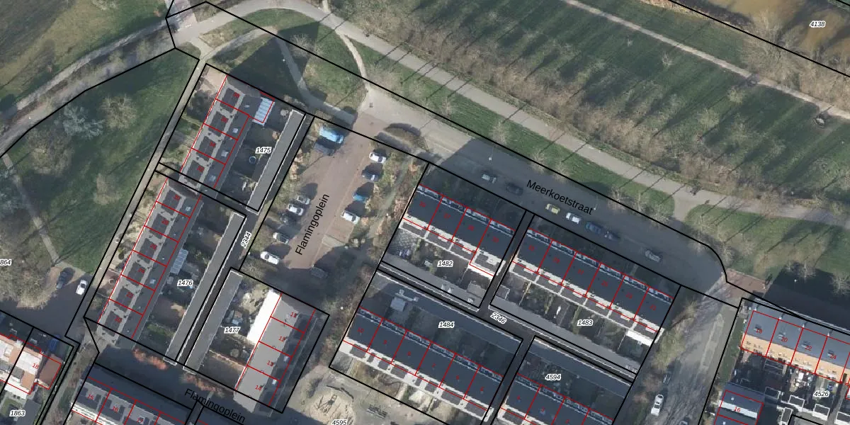 Het perceel waarop Meerkoetstraat 39 staat heeft een oppervlakte van 659 m². Dit is een groot perceel. De perceeloppervlakte wordt geregistreerd door het Kadaster. Gedetailleerde informatie over de maten van dit perceel kunt u vinden in het rapport Kadastrale kaart met maatvoering van Meerkoetstraat 39.