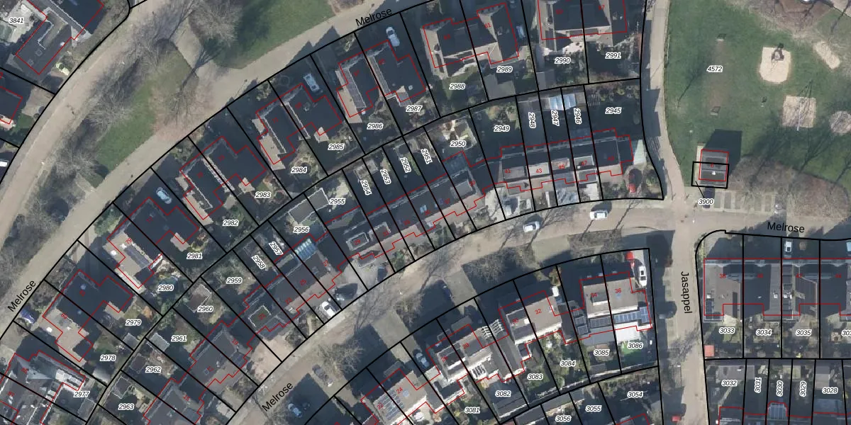 Het perceel waarop Melrose 35 staat heeft een oppervlakte van 148 m². Dit is een middelgroot perceel. De perceeloppervlakte wordt geregistreerd door het Kadaster. Gedetailleerde informatie over de maten van dit perceel kunt u vinden in het rapport Kadastrale kaart met maatvoering van Melrose 35.