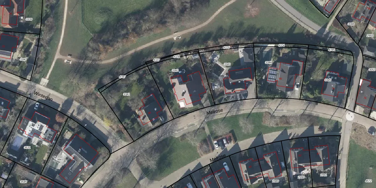 Het perceel waarop Melrose 84 staat heeft een oppervlakte van 773 m². Dit is een groot perceel. De perceeloppervlakte wordt geregistreerd door het Kadaster. Gedetailleerde informatie over de maten van dit perceel kunt u vinden in het rapport Kadastrale kaart met maatvoering van Melrose 84.
