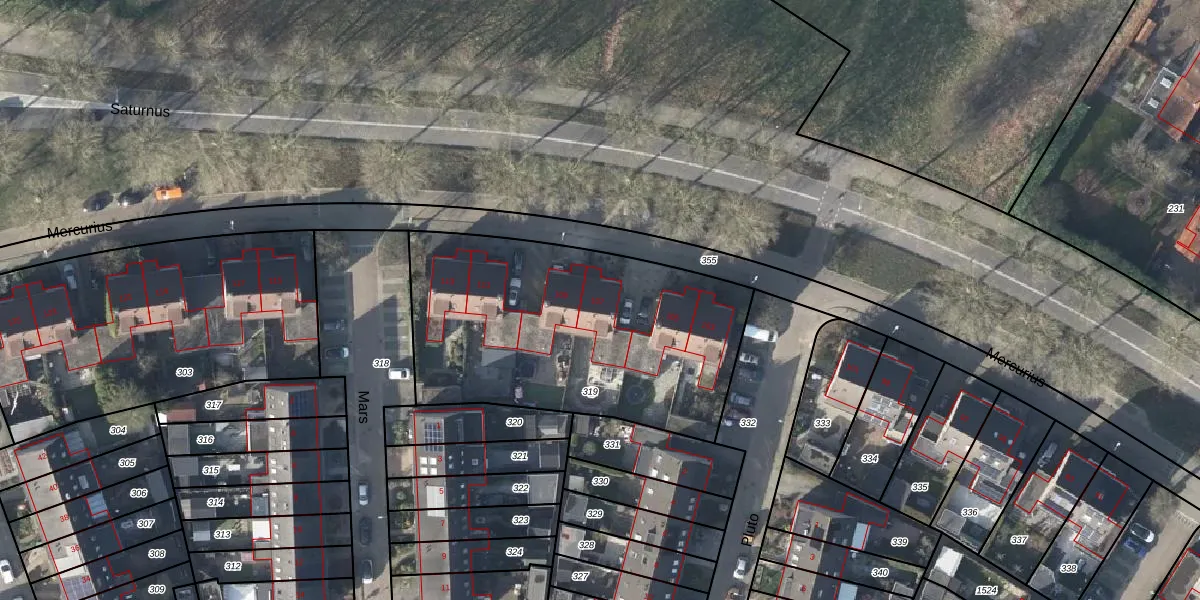 Het perceel waarop Mercurius 107 staat heeft een oppervlakte van 1495 m². Dit is een zeer groot perceel. De perceeloppervlakte wordt geregistreerd door het Kadaster. Gedetailleerde informatie over de maten van dit perceel kunt u vinden in het rapport Kadastrale kaart met maatvoering van Mercurius 107.