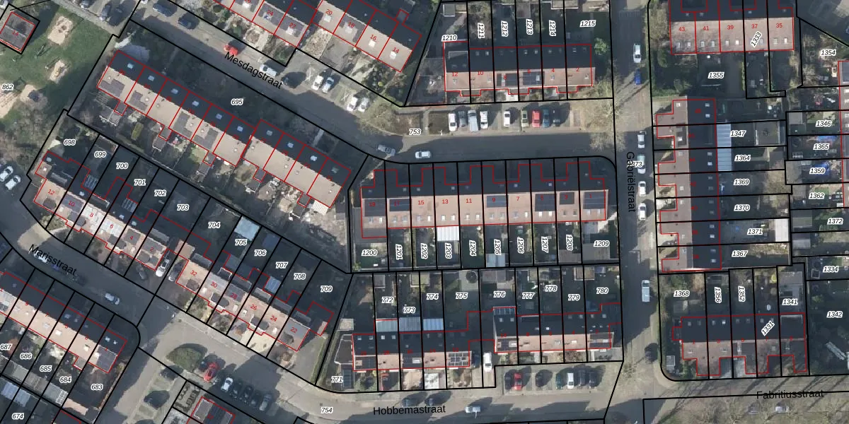 Het perceel waarop Mesdagstraat 15 staat heeft een oppervlakte van 145 m². Dit is een middelgroot perceel. De perceeloppervlakte wordt geregistreerd door het Kadaster. Gedetailleerde informatie over de maten van dit perceel kunt u vinden in het rapport Kadastrale kaart met maatvoering van Mesdagstraat 15.