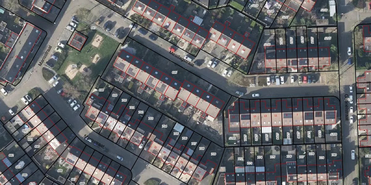 Het perceel waarop Mesdagstraat 27 staat heeft een oppervlakte van 1865 m². Dit is een zeer groot perceel. De perceeloppervlakte wordt geregistreerd door het Kadaster. Gedetailleerde informatie over de maten van dit perceel kunt u vinden in het rapport Kadastrale kaart met maatvoering van Mesdagstraat 27.