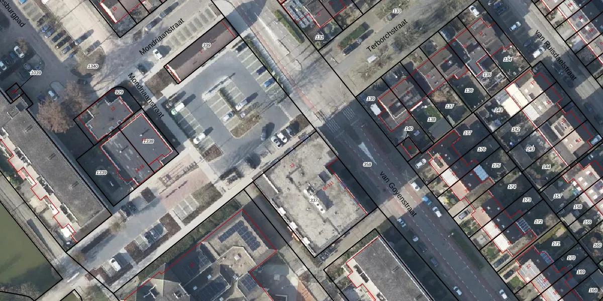 Het perceel waarop Mondriaanstraat 13 staat heeft een oppervlakte van 877 m². Dit is een groot perceel. De perceeloppervlakte wordt geregistreerd door het Kadaster. Gedetailleerde informatie over de maten van dit perceel kunt u vinden in het rapport Kadastrale kaart met maatvoering van Mondriaanstraat 13.