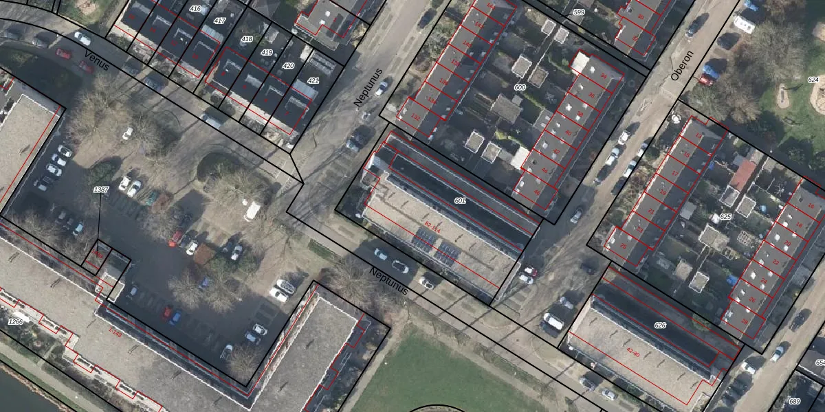 Het perceel waarop Neptunus 112 staat heeft een oppervlakte van 1105 m². Dit is een zeer groot perceel. De perceeloppervlakte wordt geregistreerd door het Kadaster. Gedetailleerde informatie over de maten van dit perceel kunt u vinden in het rapport Kadastrale kaart met maatvoering van Neptunus 112.