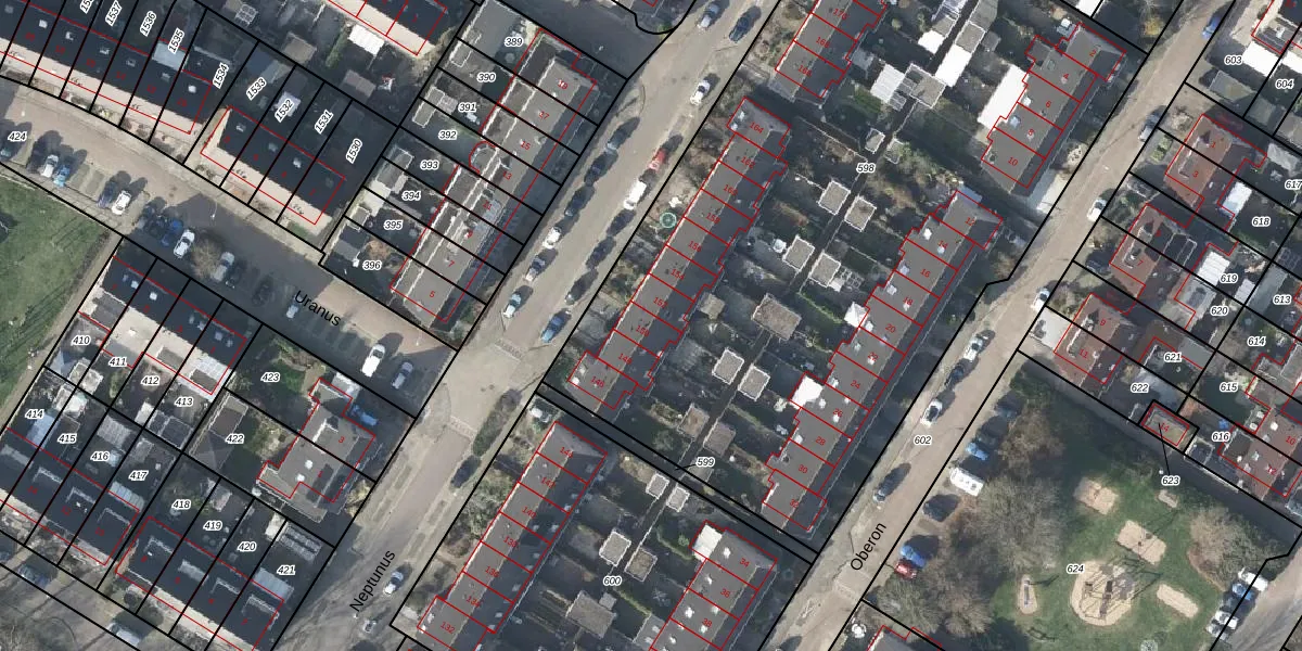 Het perceel waarop Neptunus 150 staat heeft een oppervlakte van 4705 m². Dit is een zeer groot perceel. De perceeloppervlakte wordt geregistreerd door het Kadaster. Gedetailleerde informatie over de maten van dit perceel kunt u vinden in het rapport Kadastrale kaart met maatvoering van Neptunus 150.