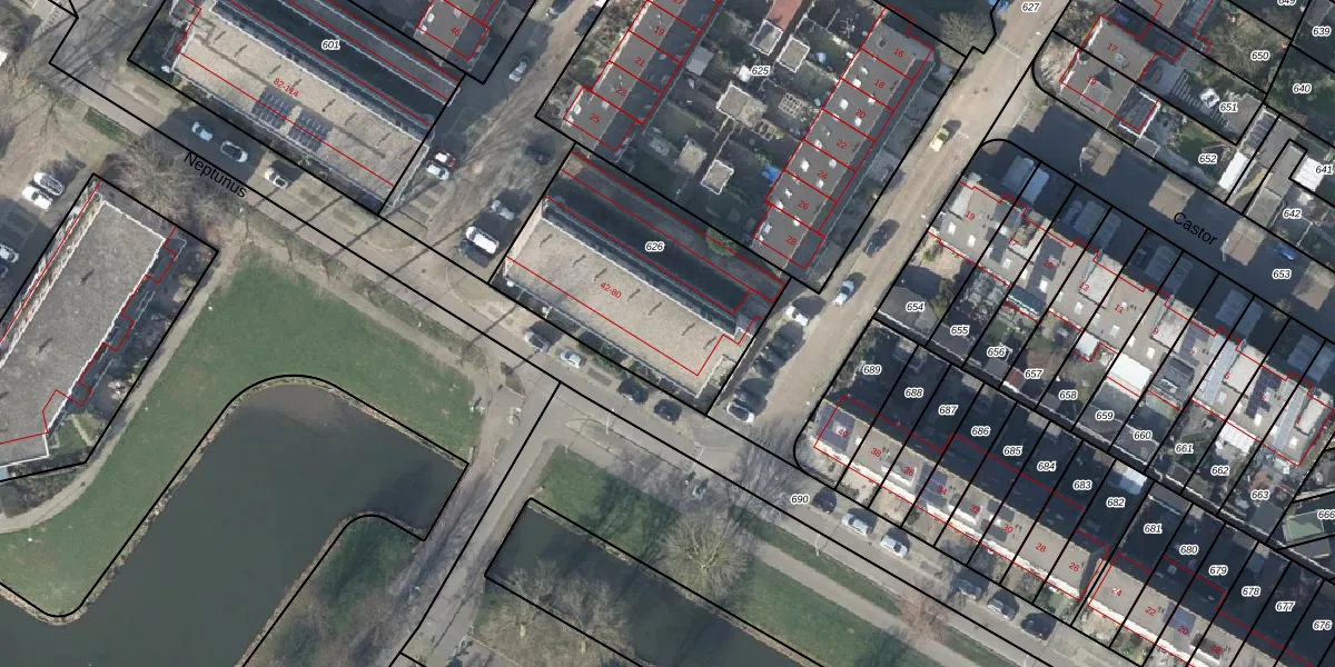 Het perceel waarop Neptunus 46 staat heeft een oppervlakte van 950 m². Dit is een groot perceel. De perceeloppervlakte wordt geregistreerd door het Kadaster. Gedetailleerde informatie over de maten van dit perceel kunt u vinden in het rapport Kadastrale kaart met maatvoering van Neptunus 46.