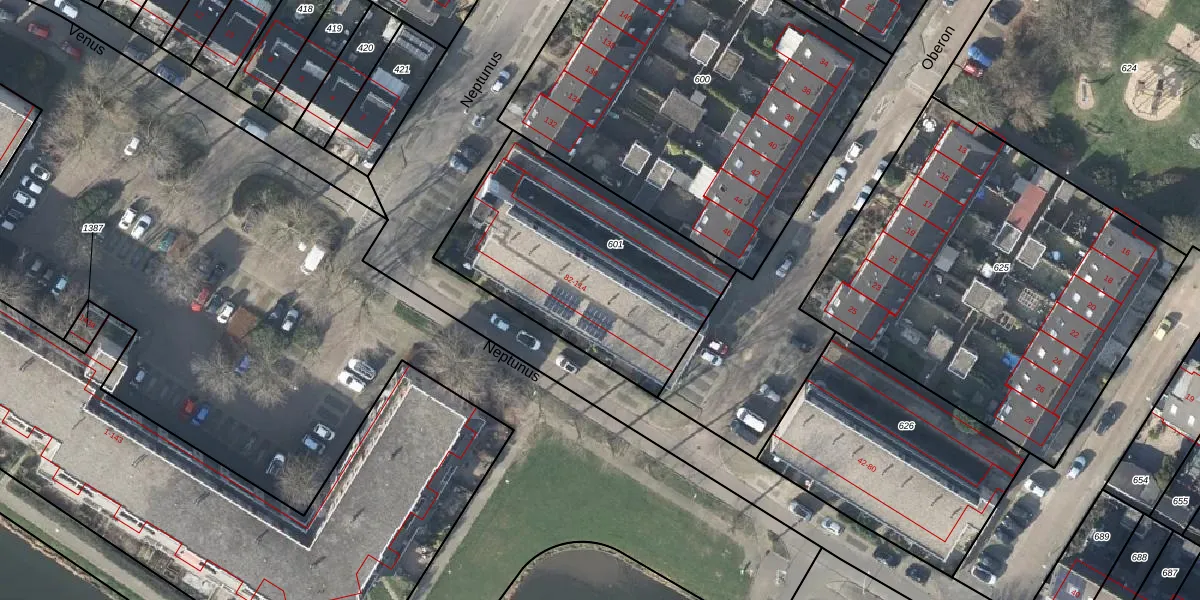 Het perceel waarop Neptunus 98 staat heeft een oppervlakte van 1105 m². Dit is een zeer groot perceel. De perceeloppervlakte wordt geregistreerd door het Kadaster. Gedetailleerde informatie over de maten van dit perceel kunt u vinden in het rapport Kadastrale kaart met maatvoering van Neptunus 98.