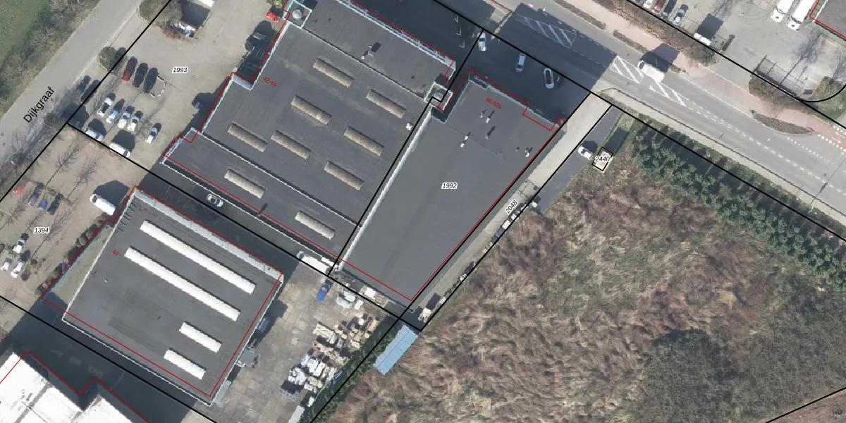 Het adres is gelegen op perceel 1992 in de sectie F en de kadastrale gemeente Duiven. De kadastrale aanduiding is aldus DVN00-F-1992. Het perceel is kleiner dan gemiddeld in Duiven. Het perceel is 1730 m² groot, terwijl het gemiddelde ligt op 2659,42 m². Het kleinste perceel in de kadastrale gemeente is 0 m² groot. De grootste perceeloppervlakte is 22,4 ha. Er zijn 3 adressen aanwezig op het perceel. In de Basisregistratie Kadaster (BRK) werden de grenzen van het perceel geregistreerd op 11-05-2011.