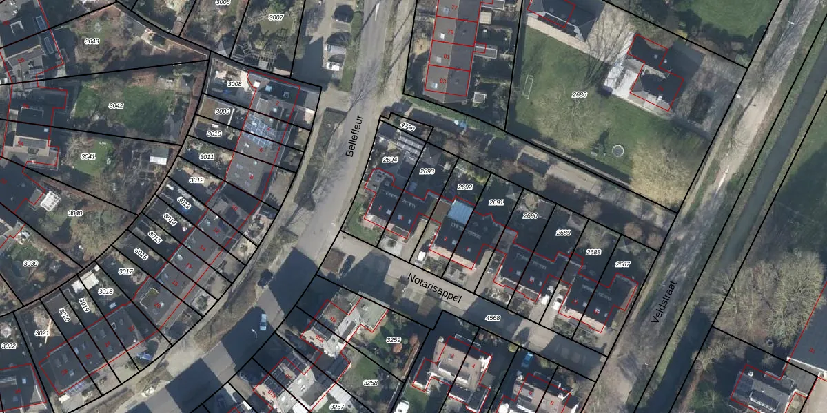 Het perceel waarop Notarisappel 3 staat heeft een oppervlakte van 245 m². Dit is een middelgroot perceel. De perceeloppervlakte wordt geregistreerd door het Kadaster. Gedetailleerde informatie over de maten van dit perceel kunt u vinden in het rapport Kadastrale kaart met maatvoering van Notarisappel 3.