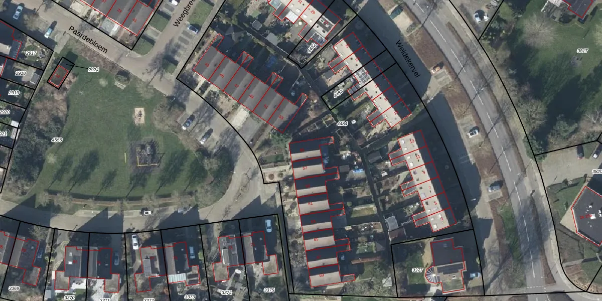 Paardebloem 55 is gelegen op kadastraal perceel DVN00E4484. Deze kadastrale aanduiding is uniek en wordt gebruikt door het Kadaster om eigendomsrechten en andere zakelijke rechten vast te leggen. Het perceel maakt onderdeel uit van de kadastrale gemeente Duiven.