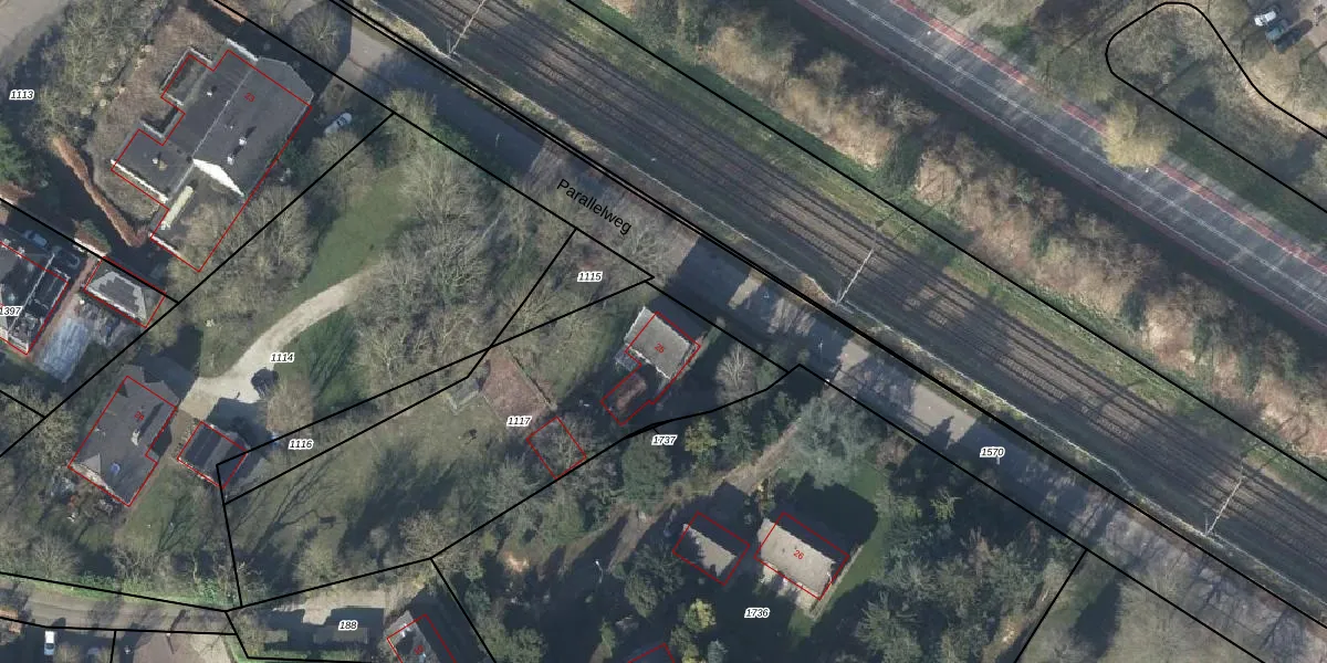 Parallelweg 25 is gelegen op kadastraal perceel DVN00D1117. Deze kadastrale aanduiding is uniek en wordt gebruikt door het Kadaster om eigendomsrechten en andere zakelijke rechten vast te leggen. Het perceel maakt onderdeel uit van de kadastrale gemeente Duiven.