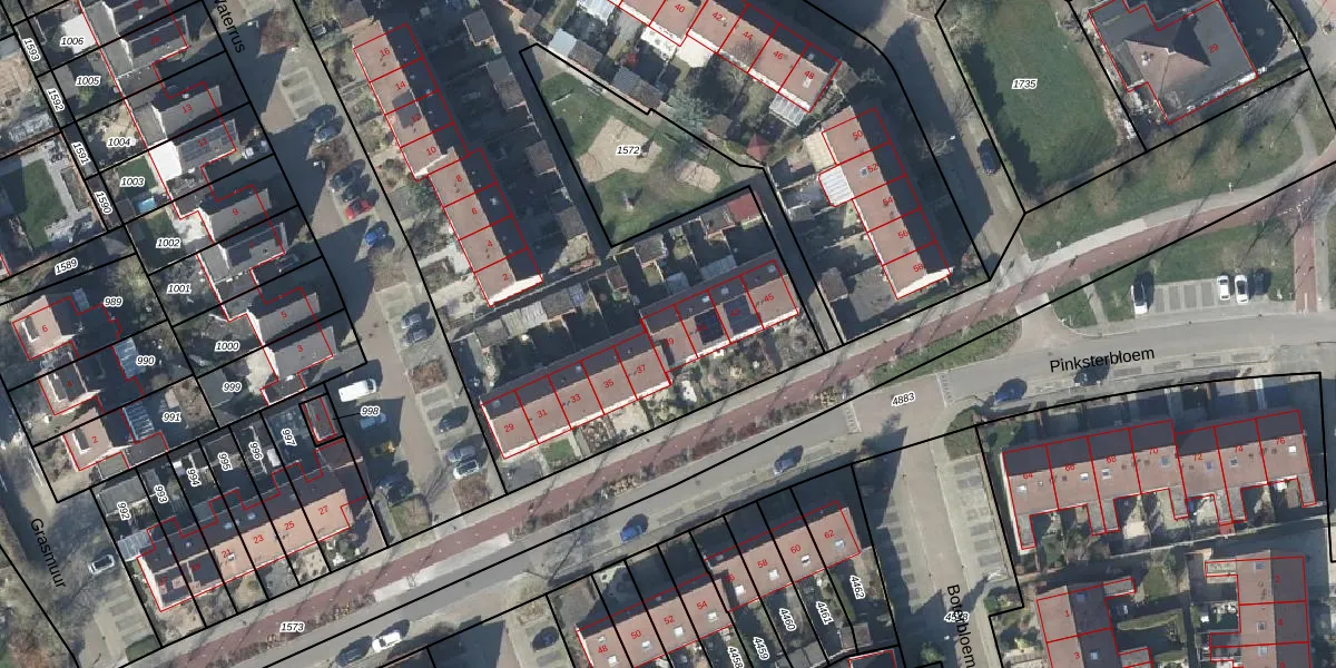 Pinksterbloem 39 is gelegen op kadastraal perceel DVN00D1264. Deze kadastrale aanduiding is uniek en wordt gebruikt door het Kadaster om eigendomsrechten en andere zakelijke rechten vast te leggen. Het perceel maakt onderdeel uit van de kadastrale gemeente Duiven.