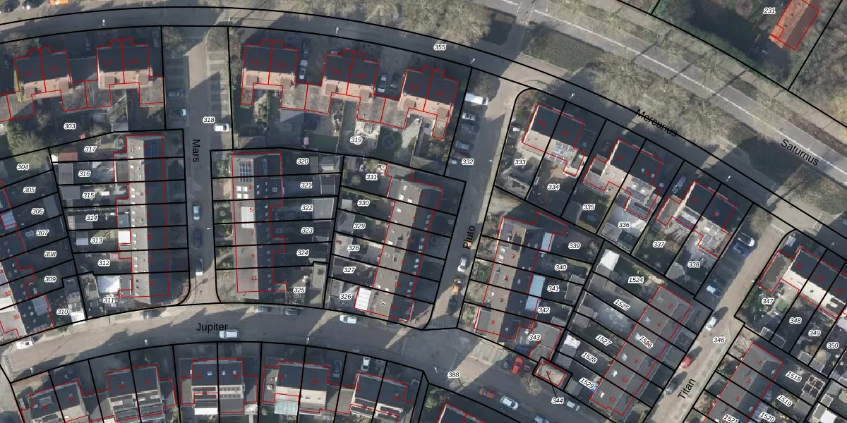 Het perceel waarop Pluto 4 staat heeft een oppervlakte van 152 m². Dit is een middelgroot perceel. De perceeloppervlakte wordt geregistreerd door het Kadaster. Gedetailleerde informatie over de maten van dit perceel kunt u vinden in het rapport Kadastrale kaart met maatvoering van Pluto 4.