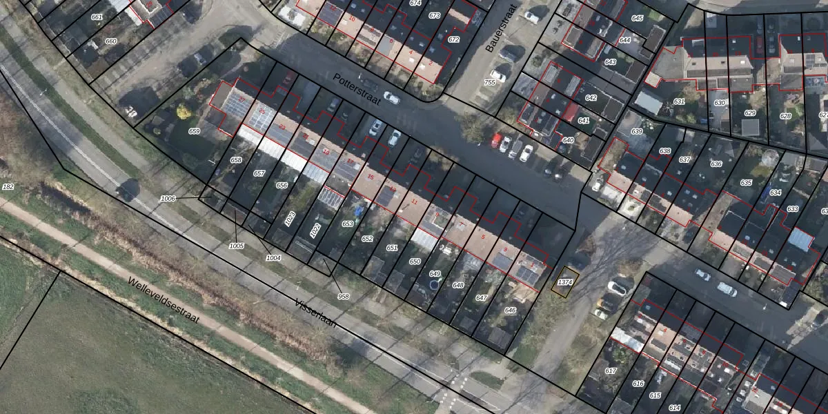 Potterstraat 11 is gelegen op kadastraal perceel DVN00G651. Deze kadastrale aanduiding is uniek en wordt gebruikt door het Kadaster om eigendomsrechten en andere zakelijke rechten vast te leggen. Het perceel maakt onderdeel uit van de kadastrale gemeente Duiven.