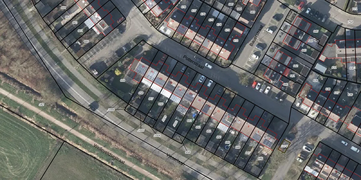 Potterstraat 19 is gelegen op kadastraal perceel DVN00G1023. Deze kadastrale aanduiding is uniek en wordt gebruikt door het Kadaster om eigendomsrechten en andere zakelijke rechten vast te leggen. Het perceel maakt onderdeel uit van de kadastrale gemeente Duiven.