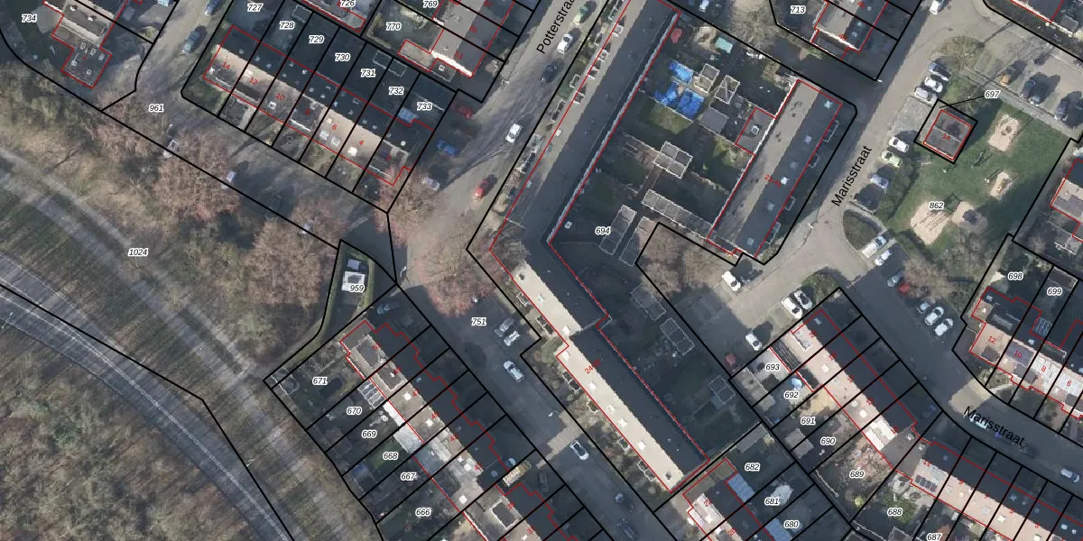 Het perceel waarop Potterstraat 48 staat heeft een oppervlakte van 3516 m². Dit is een zeer groot perceel. De perceeloppervlakte wordt geregistreerd door het Kadaster. Gedetailleerde informatie over de maten van dit perceel kunt u vinden in het rapport Kadastrale kaart met maatvoering van Potterstraat 48.