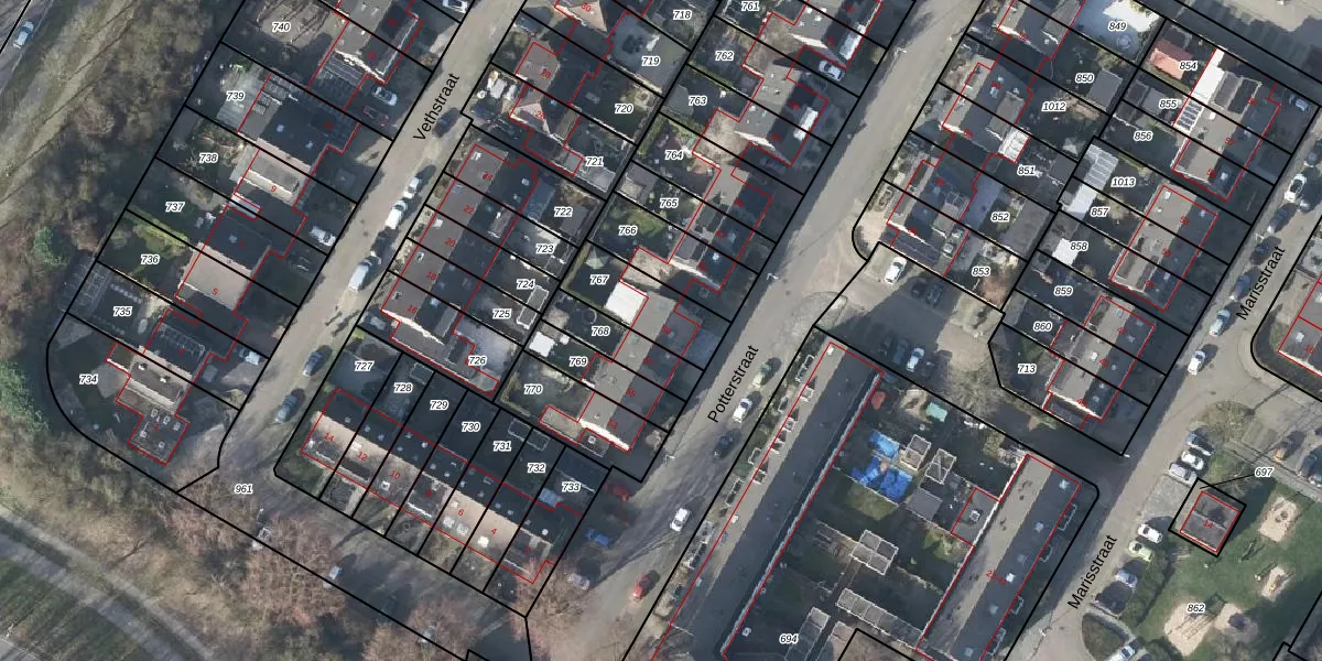 Het perceel waarop Potterstraat 59 staat heeft een oppervlakte van 215 m². Dit is een middelgroot perceel. De perceeloppervlakte wordt geregistreerd door het Kadaster. Gedetailleerde informatie over de maten van dit perceel kunt u vinden in het rapport Kadastrale kaart met maatvoering van Potterstraat 59.