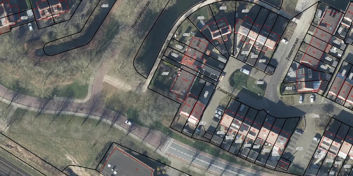 Het adres is gelegen op perceel 4227 in de sectie E en de kadastrale gemeente Duiven. De kadastrale aanduiding is aldus DVN00-E-4227. De gemiddelde perceelgrootte in Duiven is 2658,46 m². Dit perceel is kleiner: de perceeloppervlakte bedraagt 618 m². Het grootste perceel in de kadastrale gemeente is 22,4 ha. Het kleinste perceel heeft een oppervlakte van 0 m². Er zijn 6 adressen aanwezig op het perceel. De huidige grenzen van het perceel zijn digitaal in de Basisregistratie Kadaster (BRK) geregistreerd op 30-05-2012.