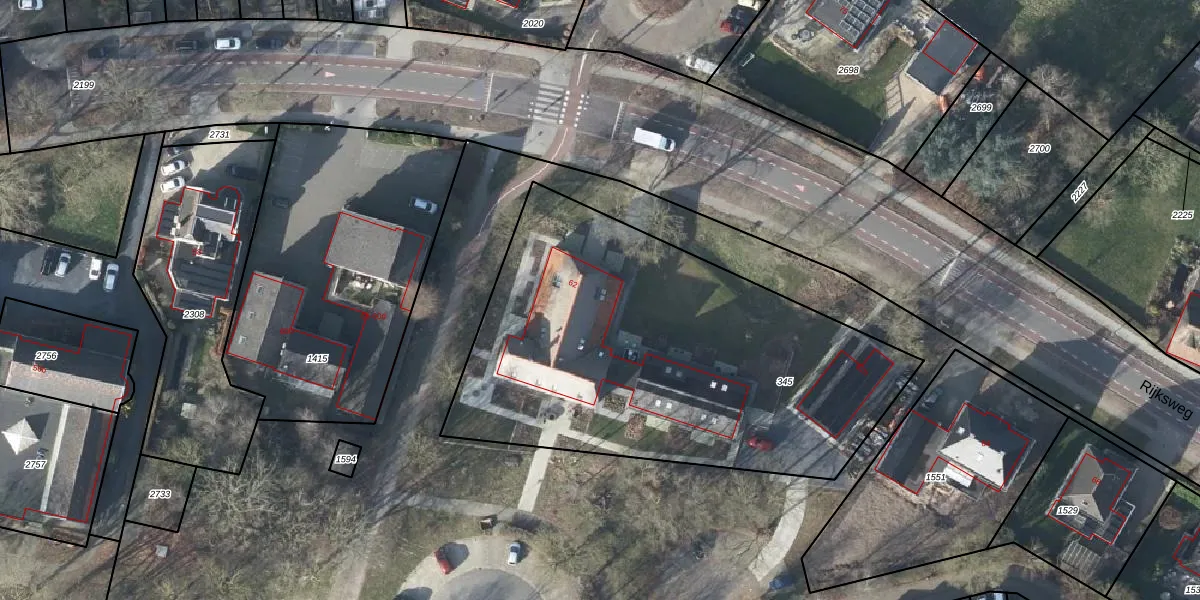 Het perceel waarop Rijksweg 62-c staat heeft een oppervlakte van 2345 m². Dit is een zeer groot perceel. De perceeloppervlakte wordt geregistreerd door het Kadaster. Gedetailleerde informatie over de maten van dit perceel kunt u vinden in het rapport Kadastrale kaart met maatvoering van Rijksweg 62-c.