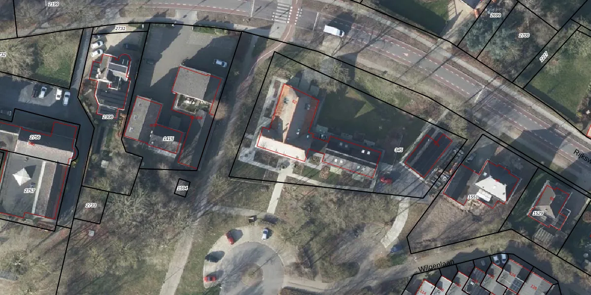 Het perceel waarop Rijksweg 62-j staat heeft een oppervlakte van 2345 m². Dit is een zeer groot perceel. De perceeloppervlakte wordt geregistreerd door het Kadaster. Gedetailleerde informatie over de maten van dit perceel kunt u vinden in het rapport Kadastrale kaart met maatvoering van Rijksweg 62-j.