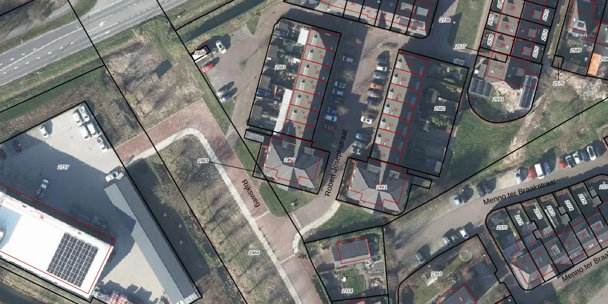 Robert Josephstraat 6 is gelegen op kadastraal perceel DVN00A2462. Deze kadastrale aanduiding is uniek en wordt gebruikt door het Kadaster om eigendomsrechten en andere zakelijke rechten vast te leggen. Het perceel maakt onderdeel uit van de kadastrale gemeente Duiven.
