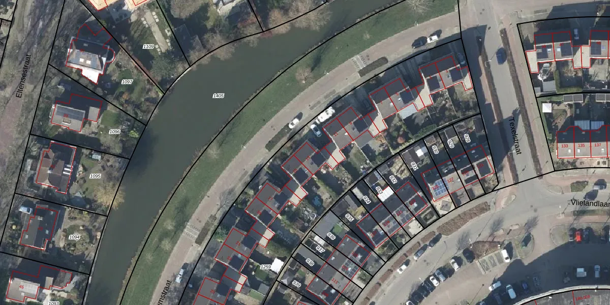 Het adres is gelegen op perceel 1259 in de sectie D en de kadastrale gemeente Duiven. De kadastrale aanduiding is aldus DVN00-D-1259. De oppervlakte van het perceel is 4175 m². Dat is groter dan gemiddeld in Duiven, waar de gemiddelde perceeloppervlakte op 2659,42 m² ligt. Het kleinste perceel in de kadastrale gemeente is 0 m² groot. De grootste perceeloppervlakte is 22,4 ha. Op het perceel liggen in totaal 18 adressen. De huidige grenzen van het perceel zijn digitaal in de Basisregistratie Kadaster (BRK) geregistreerd op 15-10-2003.