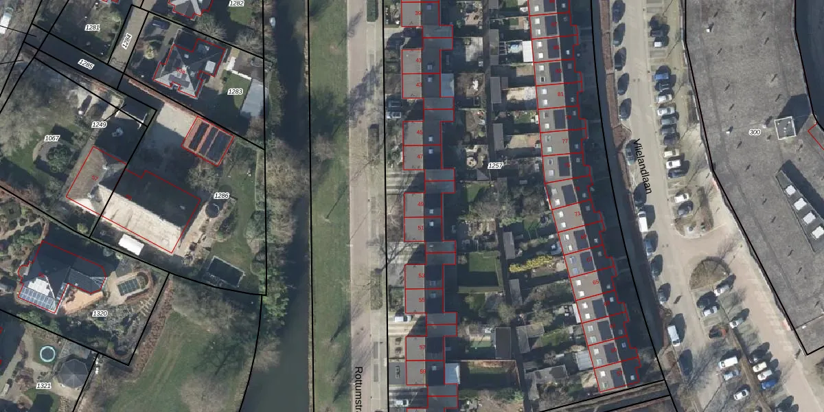 Het perceel waarop Rottumstraat 49 staat heeft een oppervlakte van 6255 m². Dit is een zeer groot perceel. De perceeloppervlakte wordt geregistreerd door het Kadaster. Gedetailleerde informatie over de maten van dit perceel kunt u vinden in het rapport Kadastrale kaart met maatvoering van Rottumstraat 49.