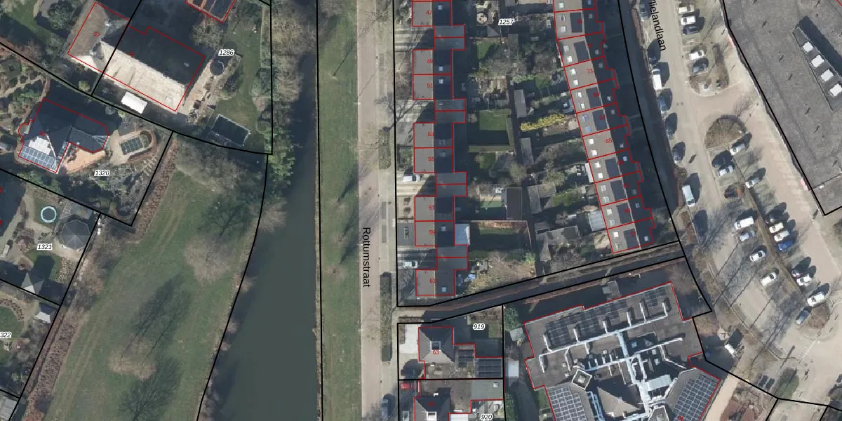 Het perceel waarop Rottumstraat 57 staat heeft een oppervlakte van 6255 m². Dit is een zeer groot perceel. De perceeloppervlakte wordt geregistreerd door het Kadaster. Gedetailleerde informatie over de maten van dit perceel kunt u vinden in het rapport Kadastrale kaart met maatvoering van Rottumstraat 57.