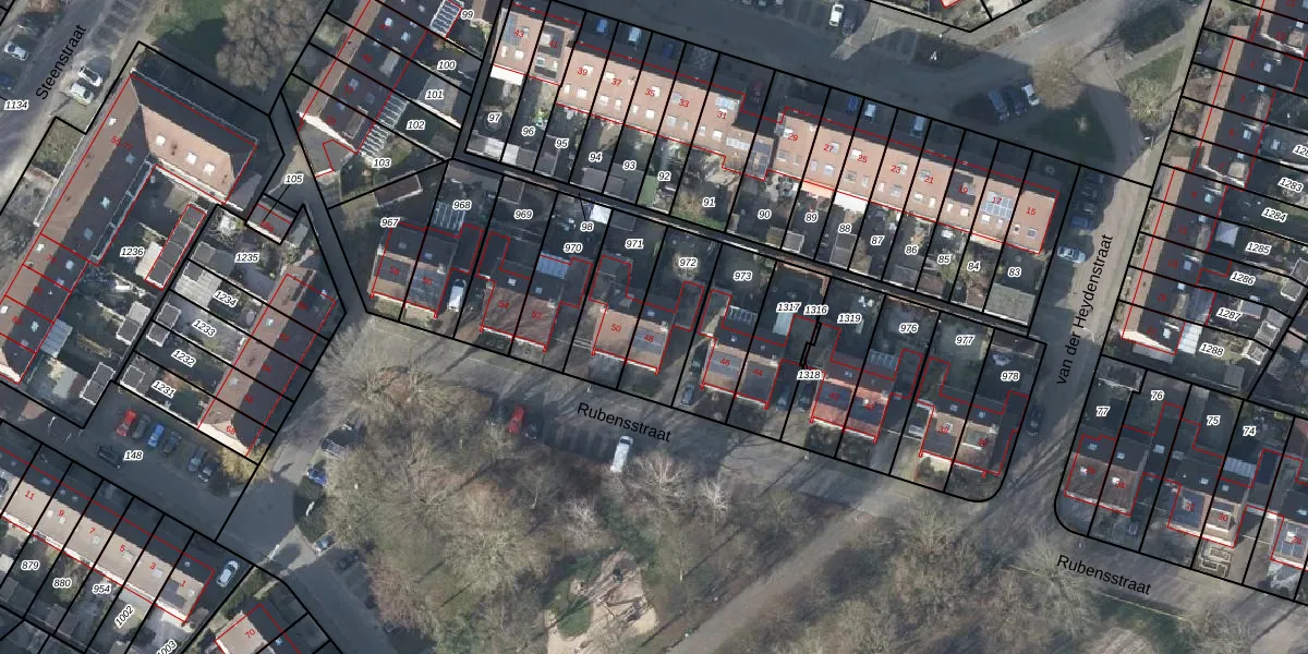 Rubensstraat 48 is gelegen op kadastraal perceel DVN00G972. Deze kadastrale aanduiding is uniek en wordt gebruikt door het Kadaster om eigendomsrechten en andere zakelijke rechten vast te leggen. Het perceel maakt onderdeel uit van de kadastrale gemeente Duiven.