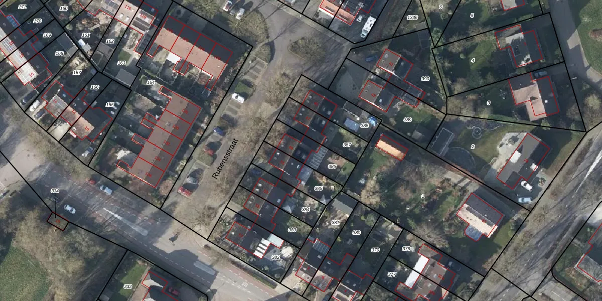 Het perceel waarop Rubensstraat 49 staat heeft een oppervlakte van 256 m². Dit is een middelgroot perceel. De perceeloppervlakte wordt geregistreerd door het Kadaster. Gedetailleerde informatie over de maten van dit perceel kunt u vinden in het rapport Kadastrale kaart met maatvoering van Rubensstraat 49.