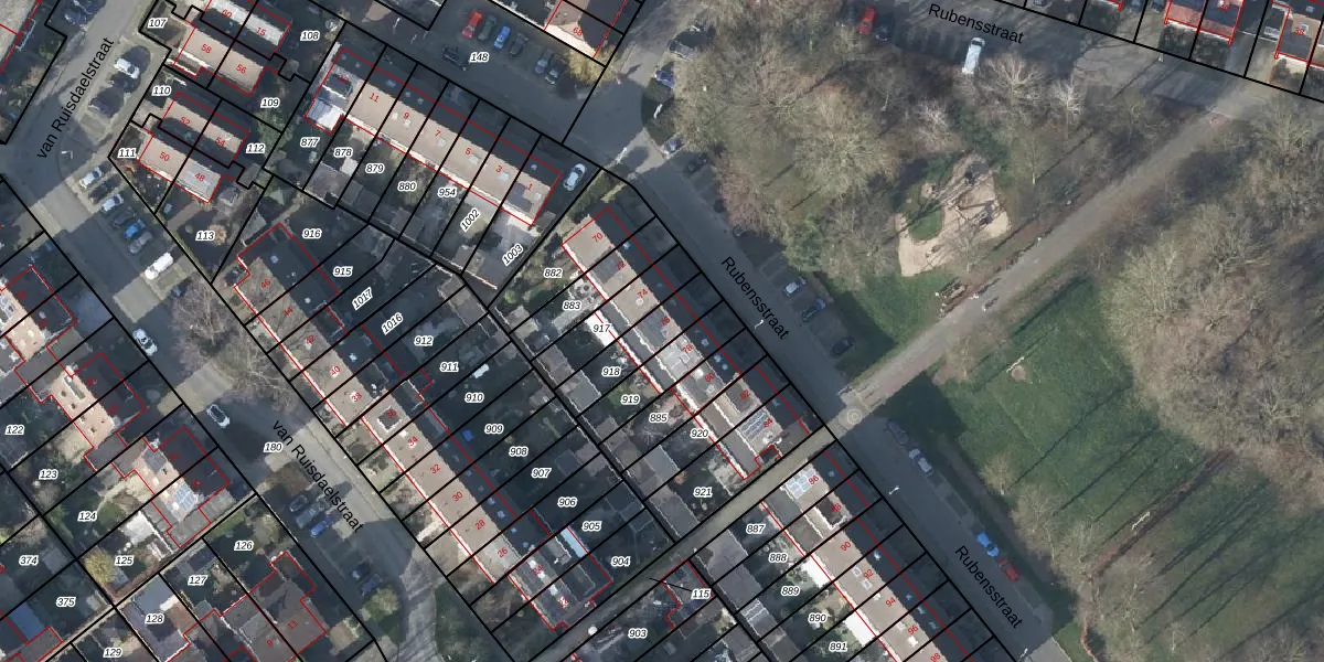 Rubensstraat 76 is gelegen op kadastraal perceel DVN00G918. Deze kadastrale aanduiding is uniek en wordt gebruikt door het Kadaster om eigendomsrechten en andere zakelijke rechten vast te leggen. Het perceel maakt onderdeel uit van de kadastrale gemeente Duiven.