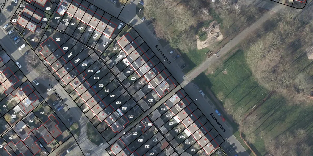 Het perceel waarop Rubensstraat 82 staat heeft een oppervlakte van 154 m². Dit is een middelgroot perceel. De perceeloppervlakte wordt geregistreerd door het Kadaster. Gedetailleerde informatie over de maten van dit perceel kunt u vinden in het rapport Kadastrale kaart met maatvoering van Rubensstraat 82.