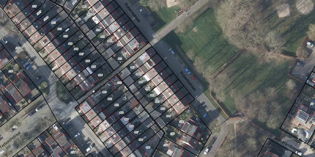 Het perceel waarop Rubensstraat 92 staat heeft een oppervlakte van 155 m². Dit is een middelgroot perceel. De perceeloppervlakte wordt geregistreerd door het Kadaster. Gedetailleerde informatie over de maten van dit perceel kunt u vinden in het rapport Kadastrale kaart met maatvoering van Rubensstraat 92.