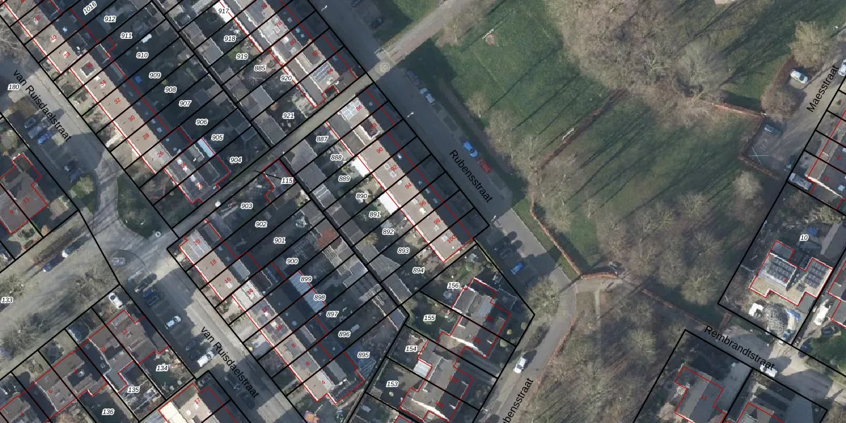 Het perceel waarop Rubensstraat 96 staat heeft een oppervlakte van 155 m². Dit is een middelgroot perceel. De perceeloppervlakte wordt geregistreerd door het Kadaster. Gedetailleerde informatie over de maten van dit perceel kunt u vinden in het rapport Kadastrale kaart met maatvoering van Rubensstraat 96.