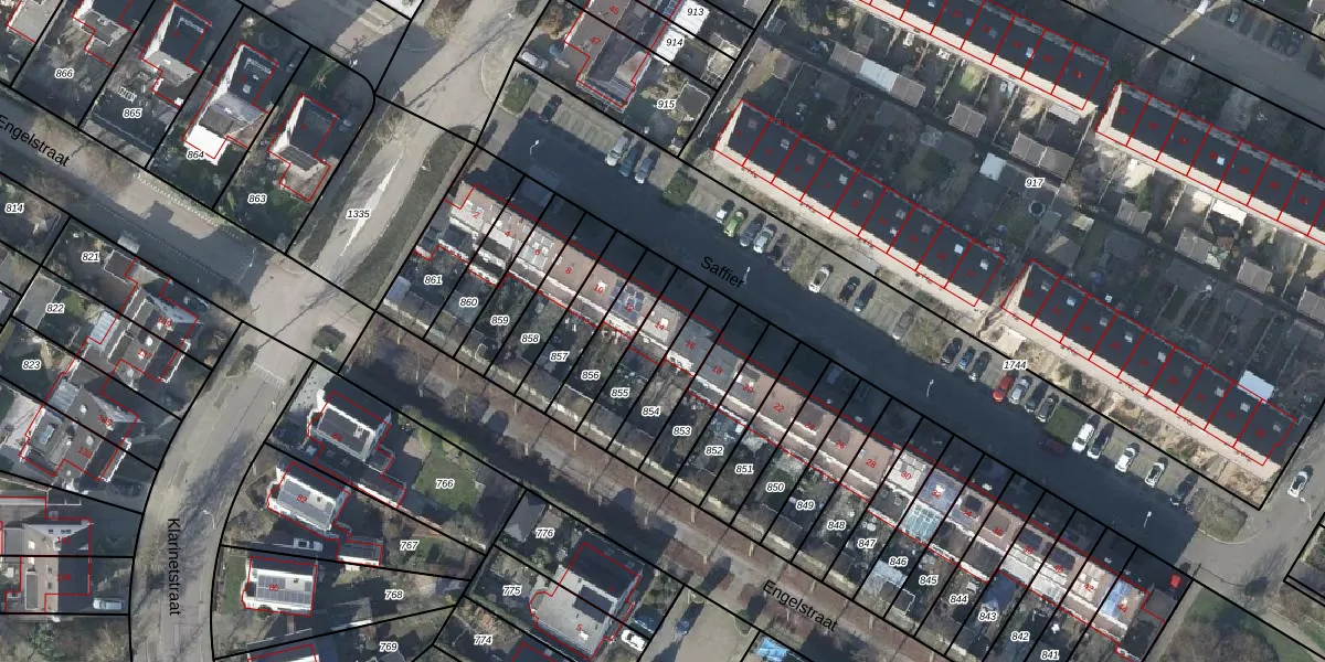Het perceel waarop Saffier 14 staat heeft een oppervlakte van 159 m². Dit is een middelgroot perceel. De perceeloppervlakte wordt geregistreerd door het Kadaster. Gedetailleerde informatie over de maten van dit perceel kunt u vinden in het rapport Kadastrale kaart met maatvoering van Saffier 14.