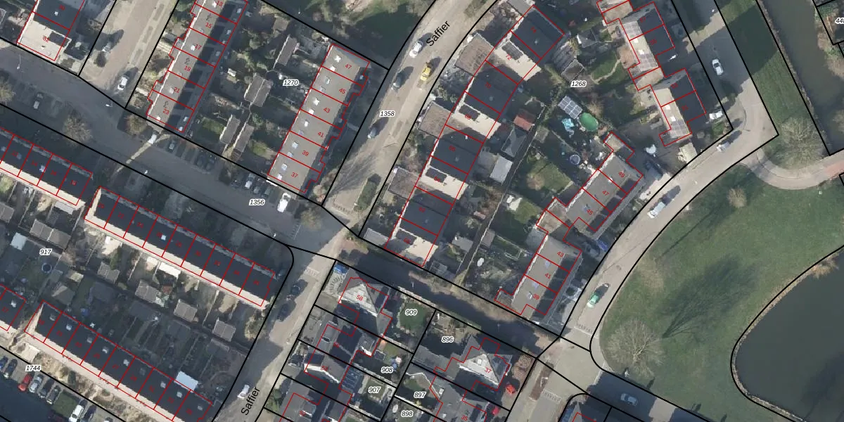 Het perceel waarop Saffier 62 staat heeft een oppervlakte van 4750 m². Dit is een zeer groot perceel. De perceeloppervlakte wordt geregistreerd door het Kadaster. Gedetailleerde informatie over de maten van dit perceel kunt u vinden in het rapport Kadastrale kaart met maatvoering van Saffier 62.