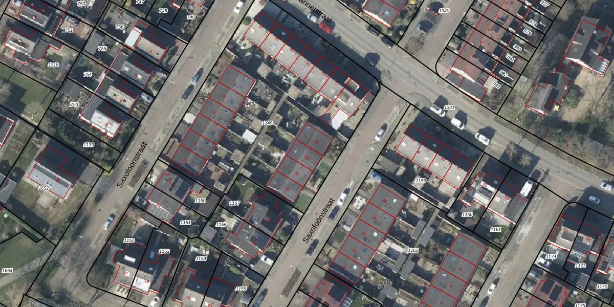 Saxofoonstraat 33 is gelegen op kadastraal perceel DVN00D1149. Deze kadastrale aanduiding is uniek en wordt gebruikt door het Kadaster om eigendomsrechten en andere zakelijke rechten vast te leggen. Het perceel maakt onderdeel uit van de kadastrale gemeente Duiven.