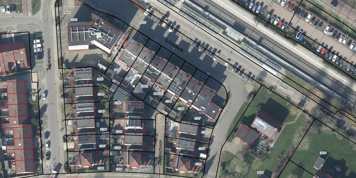 Gebruik de zoekbalk of klik op een perceel voor informatie over de adressen binnen dit perceel.
