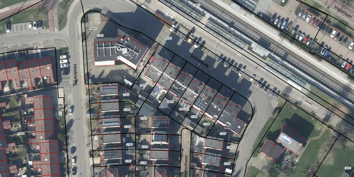 Gebruik de zoekbalk of klik op een perceel voor informatie over de adressen binnen dit perceel.