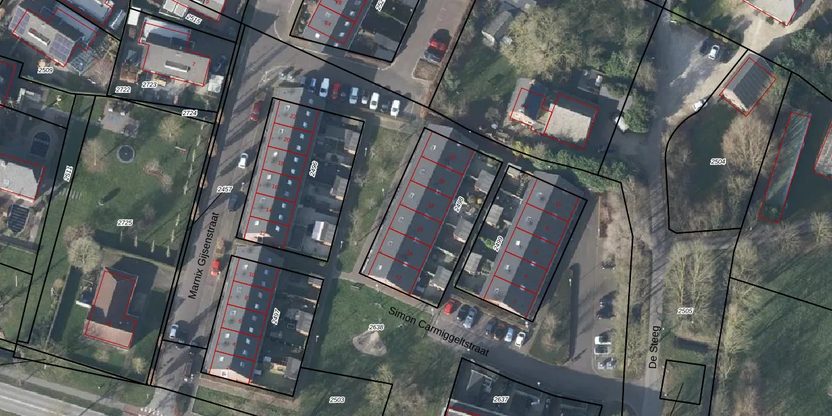 Simon Carmiggeltstraat 18 is gelegen op kadastraal perceel DVN00A2498. Deze kadastrale aanduiding is uniek en wordt gebruikt door het Kadaster om eigendomsrechten en andere zakelijke rechten vast te leggen. Het perceel maakt onderdeel uit van de kadastrale gemeente Duiven.