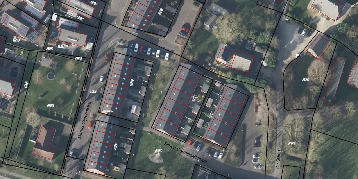 Simon Carmiggeltstraat 20 is gelegen op kadastraal perceel DVN00A2498. Deze kadastrale aanduiding is uniek en wordt gebruikt door het Kadaster om eigendomsrechten en andere zakelijke rechten vast te leggen. Het perceel maakt onderdeel uit van de kadastrale gemeente Duiven.