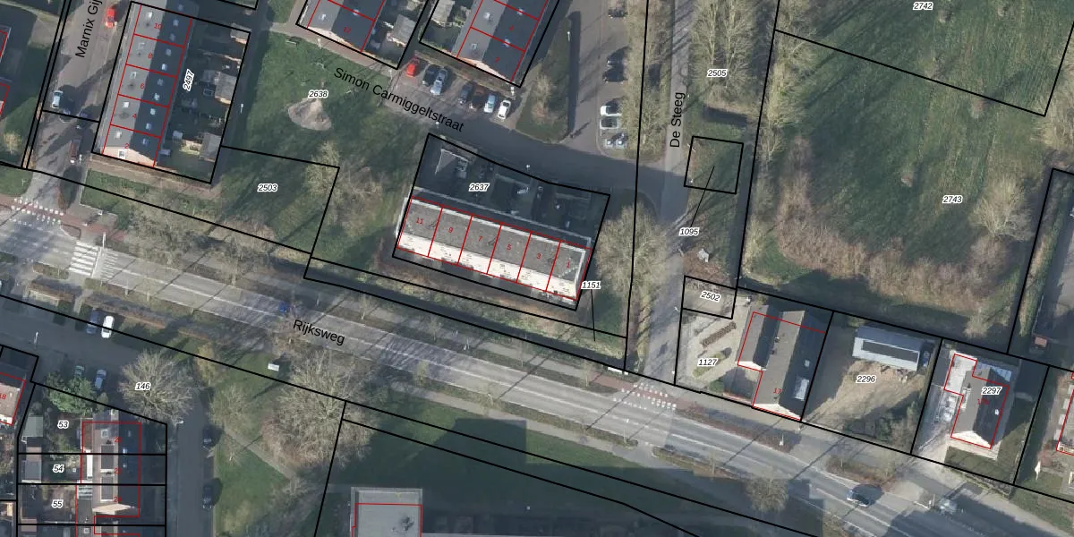 Simon Carmiggeltstraat 3 is gelegen op kadastraal perceel DVN00A2637. Deze kadastrale aanduiding is uniek en wordt gebruikt door het Kadaster om eigendomsrechten en andere zakelijke rechten vast te leggen. Het perceel maakt onderdeel uit van de kadastrale gemeente Duiven.