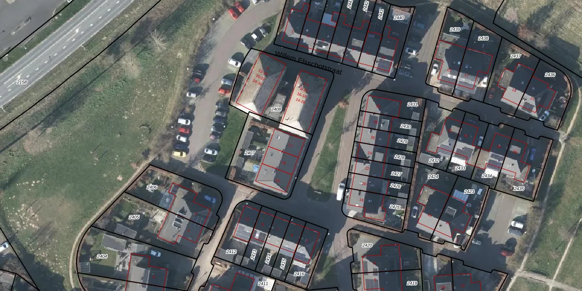 Het adres is gelegen op perceel 2407 in de sectie A en de kadastrale gemeente Duiven. De kadastrale aanduiding is aldus DVN00-A-2407. Het perceel is kleiner dan gemiddeld in Duiven. Het perceel is 562 m² groot, terwijl het gemiddelde ligt op 2658,46 m². De grootste perceeloppervlakte in de kadastrale gemeente is 22,4 ha. De kleinste oppervlakte bedraagt 0 m². Op het perceel zijn 3 adressen aanwezig. De huidige grenzen van het perceel zijn digitaal in de Basisregistratie Kadaster (BRK) geregistreerd op 05-11-2012.