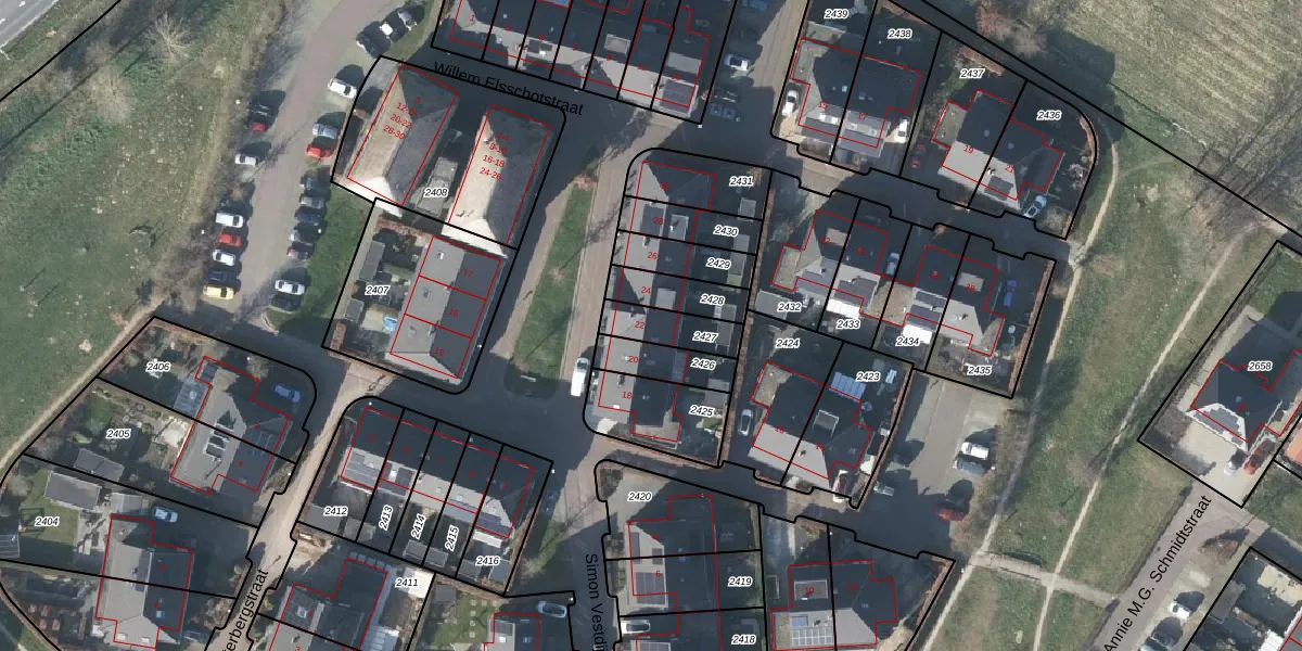 Het adres is gelegen op perceel 2427 in de sectie A en de kadastrale gemeente Duiven. De kadastrale aanduiding is aldus DVN00-A-2427. Het perceel is kleiner dan gemiddeld in Duiven. Het perceel is 117 m² groot, terwijl het gemiddelde ligt op 2659,42 m². De grootste perceeloppervlakte in de kadastrale gemeente is 22,4 ha. De kleinste oppervlakte bedraagt 0 m². Op het perceel bevinden zich geen andere adressen. De huidige grenzen van het perceel zijn digitaal in de Basisregistratie Kadaster (BRK) geregistreerd op 05-11-2012.