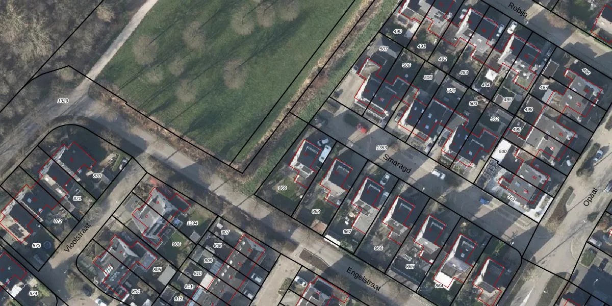 Het perceel waarop Smaragd 13 staat heeft een oppervlakte van 363 m². Dit is een groot perceel. De perceeloppervlakte wordt geregistreerd door het Kadaster. Gedetailleerde informatie over de maten van dit perceel kunt u vinden in het rapport Kadastrale kaart met maatvoering van Smaragd 13.